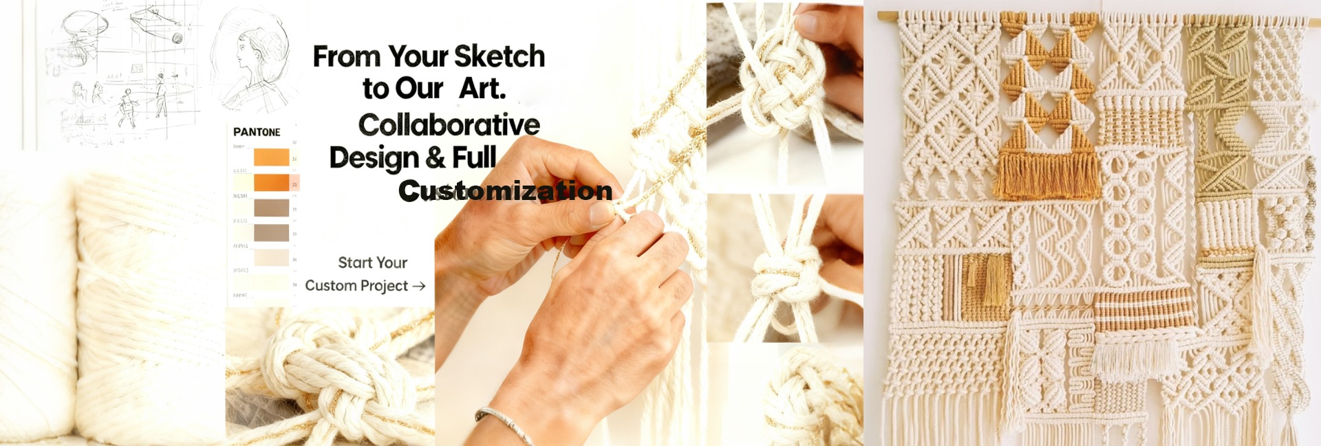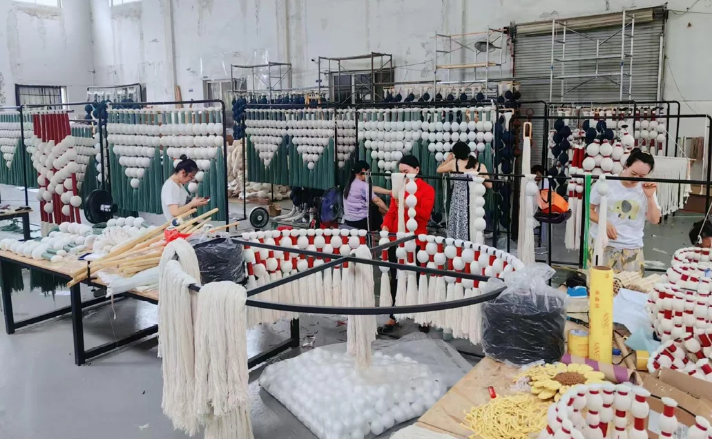 C-DO Weaving Factory specializes in the research, design, production, and export of handcrafted indoor and outdoor decorative products. With 10 years of experience in foreign trade, we offer a full-chain export capability. Our independent design team, with over 20 years of industry expertise, provides customized weaving art solutions for hotels, homestays, shopping malls, restaurants, and other commercial spaces. Our 1,000㎡ factory, with a 9-meter ceiling height and a team of over 100 skilled artisans, crafts high-quality macrame wall hangings, tapestries, lighting, storage solutions, and festive decorations with meticulous craftsmanship. With a commitment to continuous innovation, our product development team launches new designs every month and offers ODM/OEM customization services to help clients reduce development costs and expand their markets efficiently. We also provide customized packaging solutions to enhance brand recognition. Currently, our handcrafted weaving products are exported to over 60 countries and are trusted by international brands and retailers. We look forward to collaborating with you to create an iconic fiber art brand together!